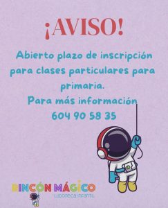 - Tfno: 604905835 (De lunes a viernes: 10:00 a 15:30, y 17:00 a 20:00 horas).